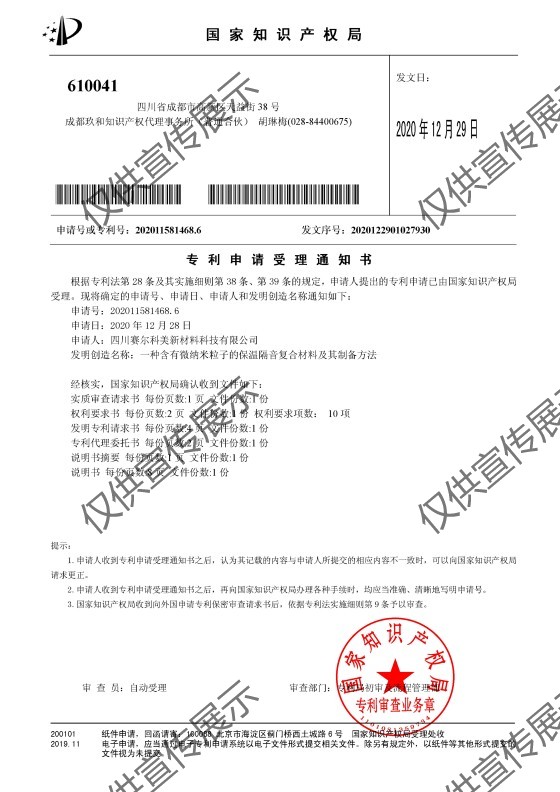 “賽爾科美”志在向全世界用戶提供最先進的綠色建材解決方案,引領(lǐng)低碳住宅產(chǎn)業(yè)化革命,用心踐行低碳環(huán)保的綠色建筑產(chǎn)業(yè)化理念。公司研發(fā)團隊歷時多年,成功的研發(fā)了多個綠色建筑和生態(tài)環(huán)境新材料,其中核心產(chǎn)品有:MFP無機硅聲能凝膠、SEK硅基物保溫系統(tǒng)、SER可變光膜等,均屬國內(nèi)首創(chuàng),并獲得三十余項國家專利及《中國綠色建材三星級認(rèn)證》。